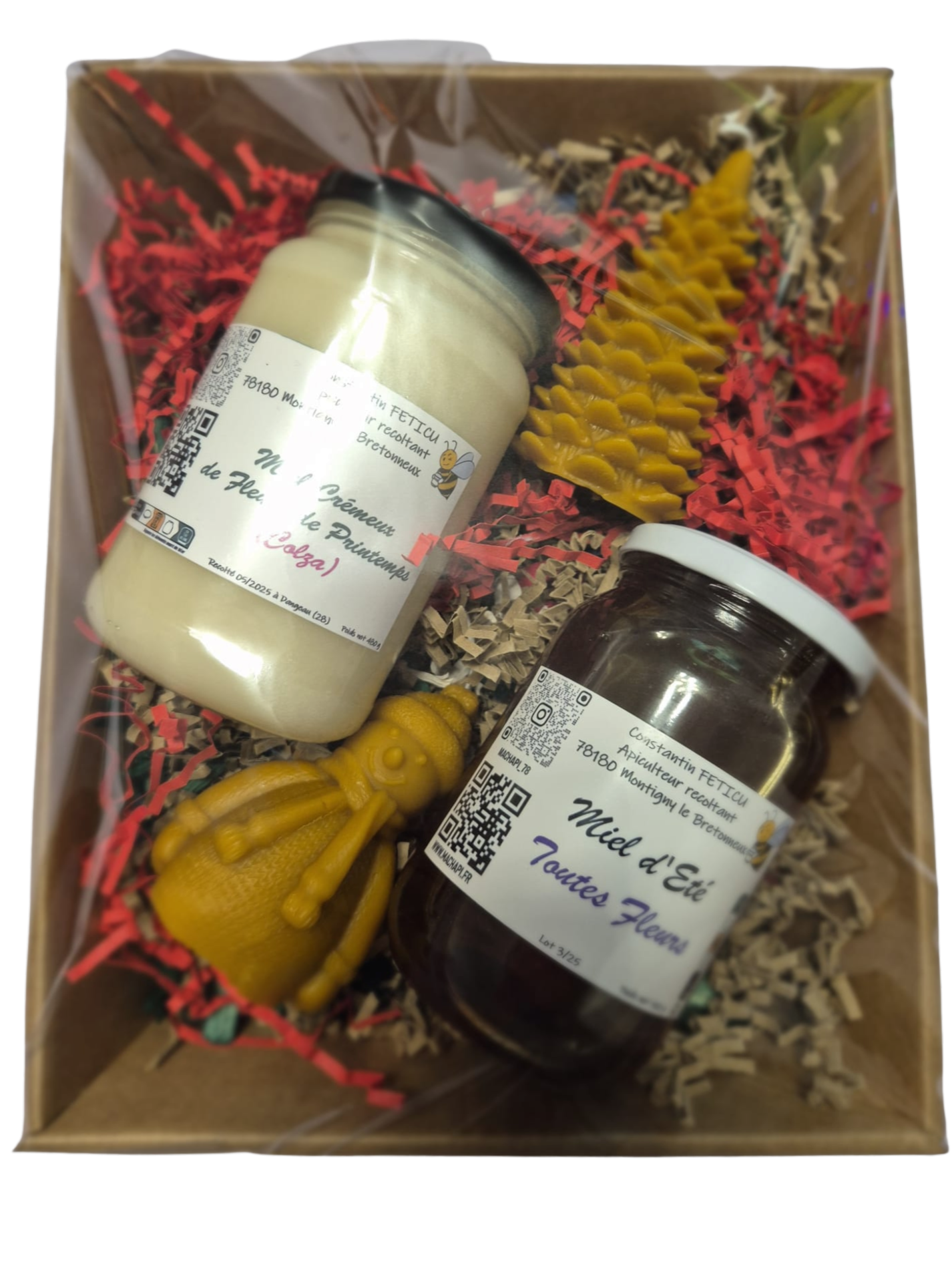 - deux pots de miel de 500g au choix;